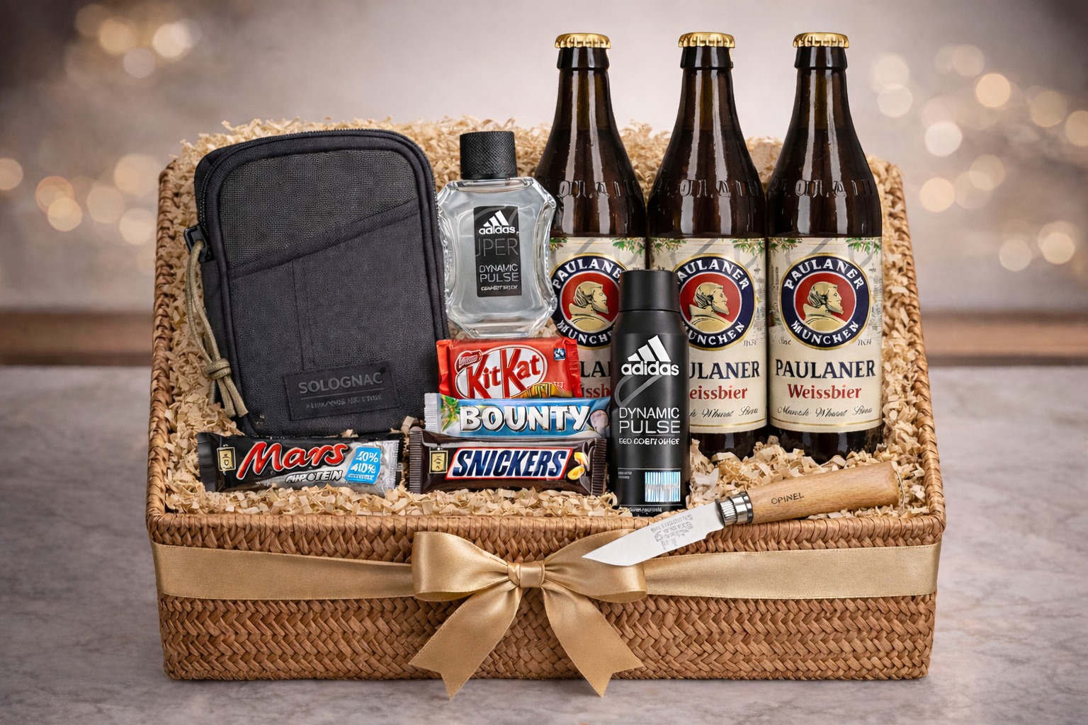 At the heart of The Gentleman’s Indulgence premium gift, you will find a Solognac bag and a selection of premium beverages including Paulaner Beer. Alongside these, iconic chocolate favourites such as Mars, Bounty, KitKat, and Snickers add a sweet, indulgent touch. Furthermore, these elements complement each other perfectly, balancing flavor, richness, and sophistication in every bite and sip.